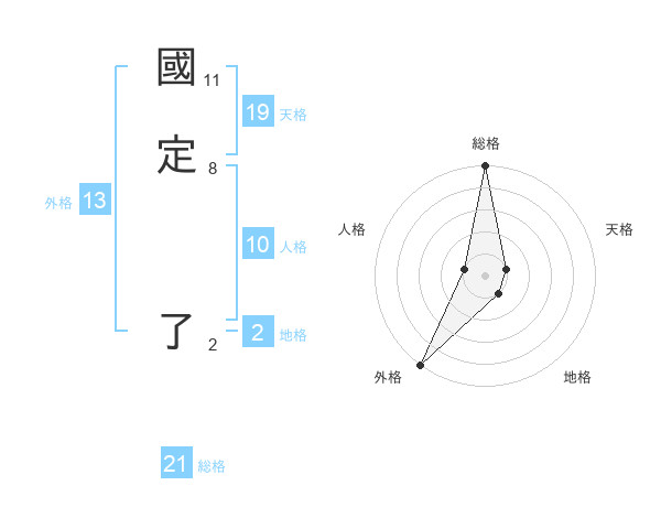 國定 了さんの総格は21画の5点!