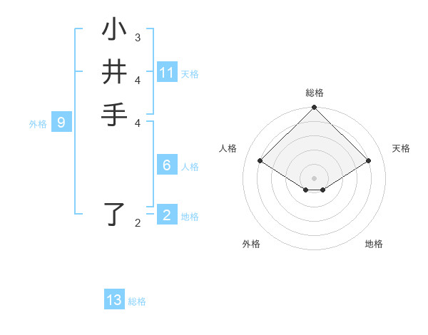 小井手 了さんの総格は13画の5点!