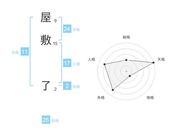 屋敷 了さんの総格は26画の2点!