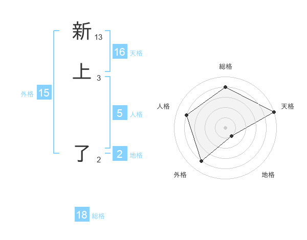 新上 了さんの天格は16画の5点!