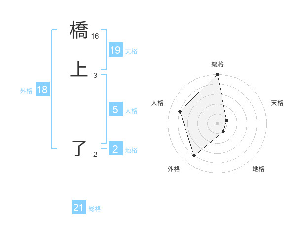 橋上 了さんの総格は21画の5点!