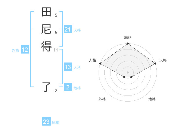 田尼得 了さんの総格は23画の5点!