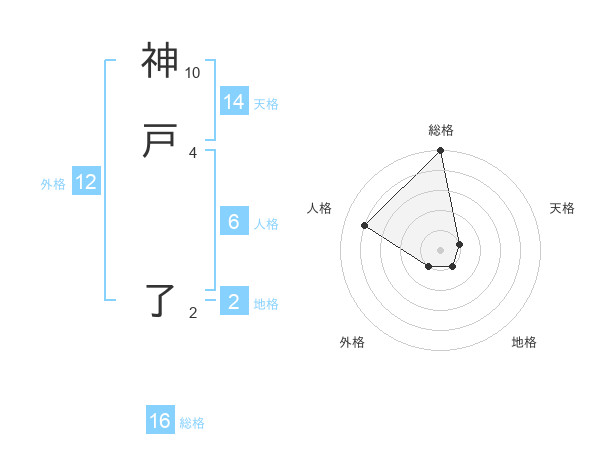 神戸 了さんの総格は16画の5点!