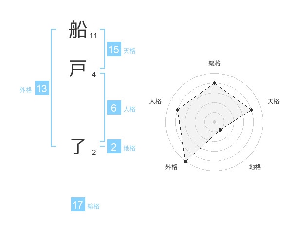 船戸 了さんを姓名の画数から五運を鑑定
