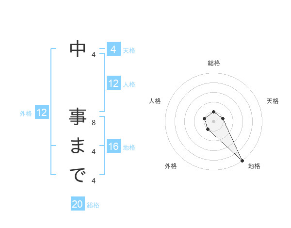 中 事までさんの総格は20画の1点!