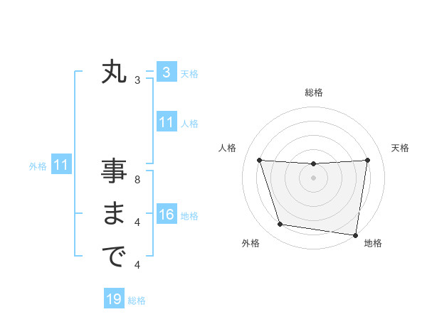 丸 事までさんの外格は11画の4点!