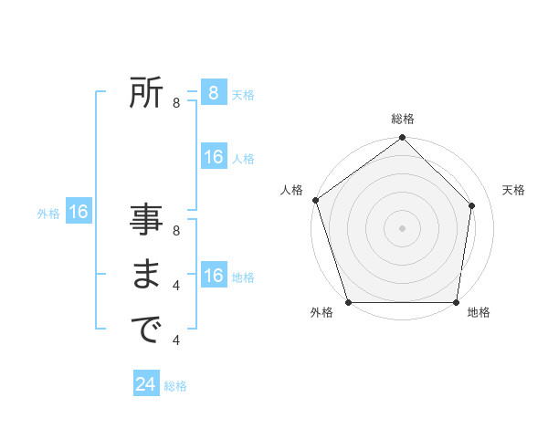 所 事までさんの外格は16画の5点!