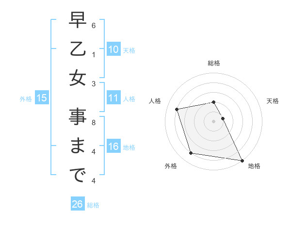 早乙女 事までさんの外格は15画の4点!