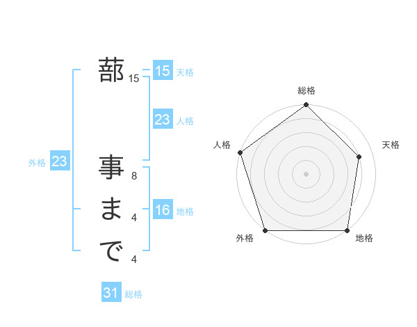蔀 事までさんの外格は23画の5点!