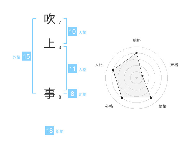 吹上 事さんの総格は18画の4点!