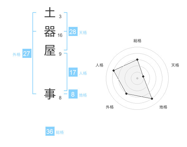 土器屋 事さんの総格は36画の3点!