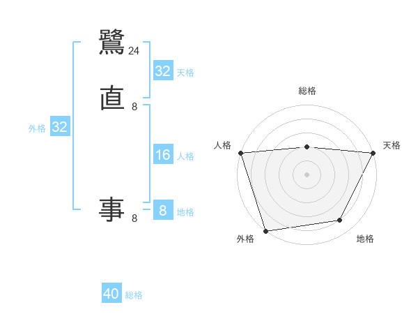 鷺直 事さんの外格は32画の5点!