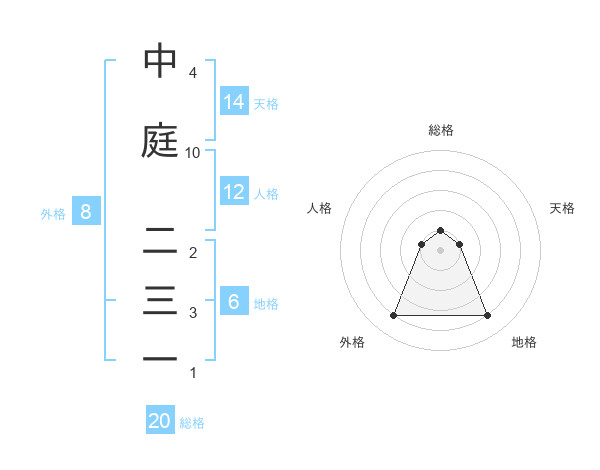 中庭 二三一さんの総格は20画の1点!