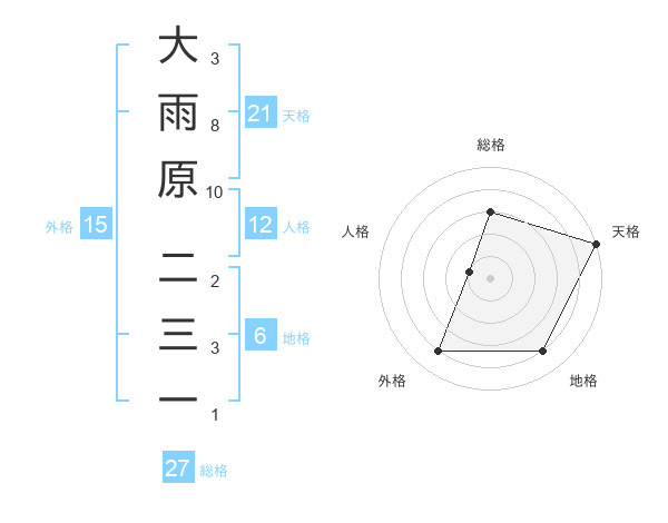 大雨原 二三一さんを姓名の画数から五運を鑑定