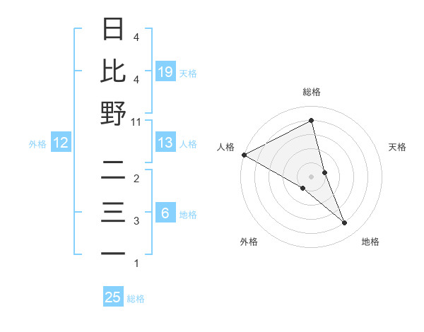 日比野 二三一さんを姓名の画数から五運を鑑定