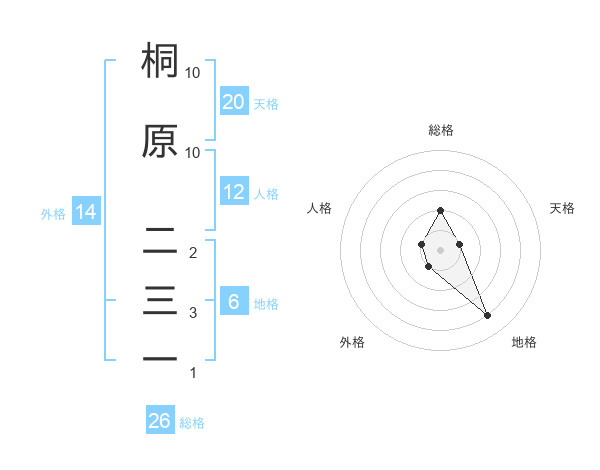 桐原 二三一さんを姓名の画数から五運を鑑定