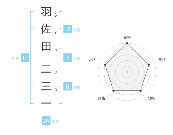 羽佐田 二三一さんを姓名の画数から五運を鑑定