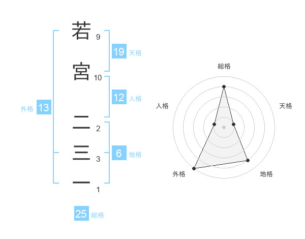 若宮 二三一さんの総格は25画の4点!