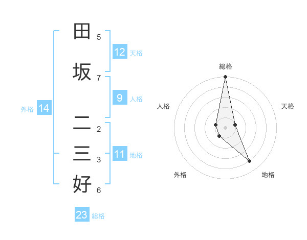 田坂 二三好さんを姓名の画数から五運を鑑定
