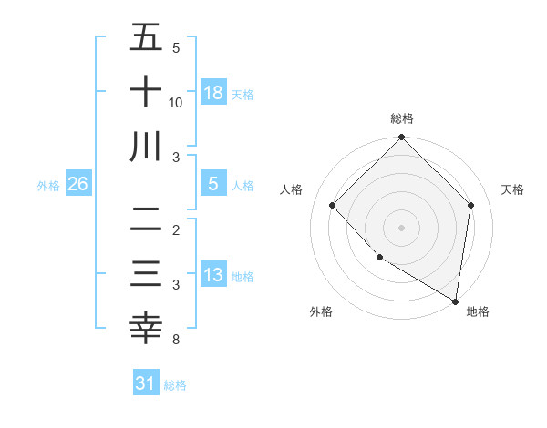 五十川 二三幸さんを姓名の画数から五運を鑑定