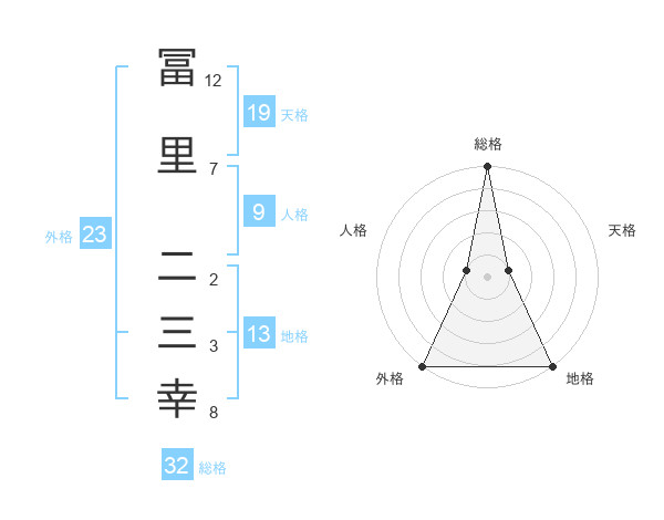 冨里 二三幸さんを姓名の画数から五運を鑑定