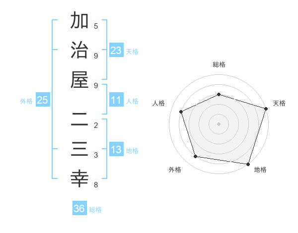 加治屋 二三幸さんを姓名の画数から五運を鑑定