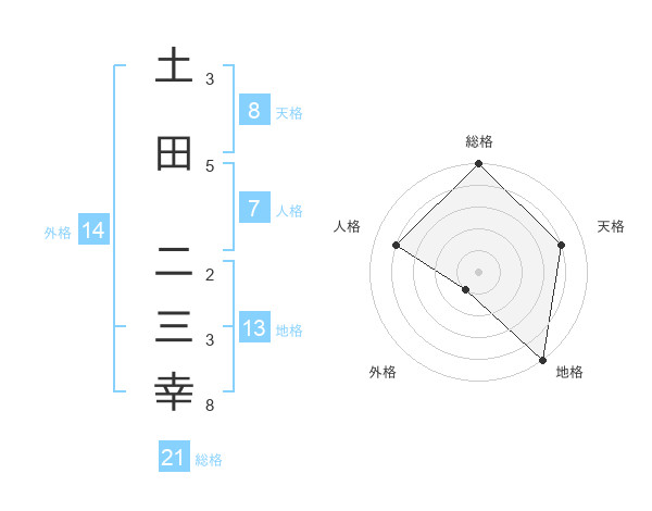 土田 二三幸さんを姓名の画数から五運を鑑定