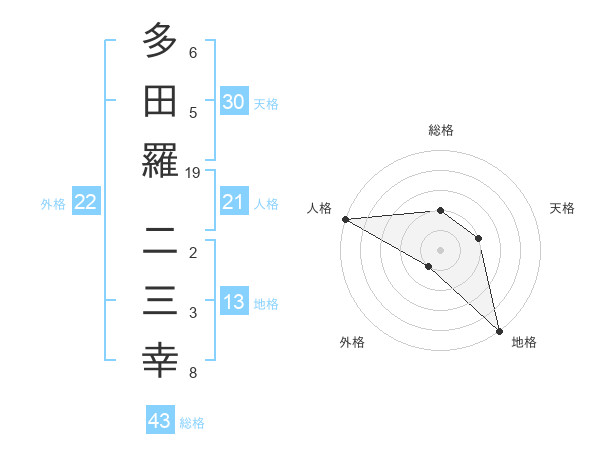 多田羅 二三幸さんを姓名の画数から五運を鑑定