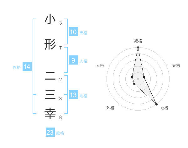 小形 二三幸さんの総格は23画の5点!