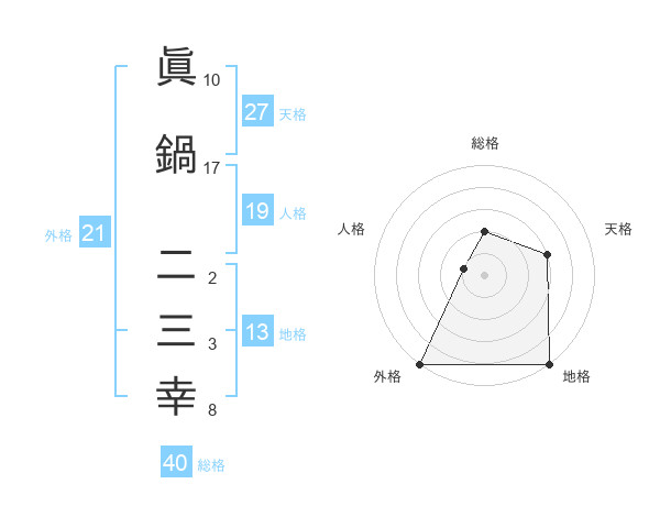 眞鍋 二三幸さんの地格は13画の5点!