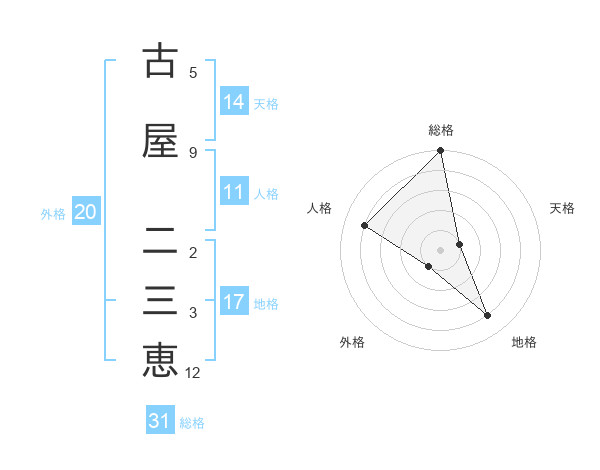 古屋 二三恵さんを姓名の画数から五運を鑑定