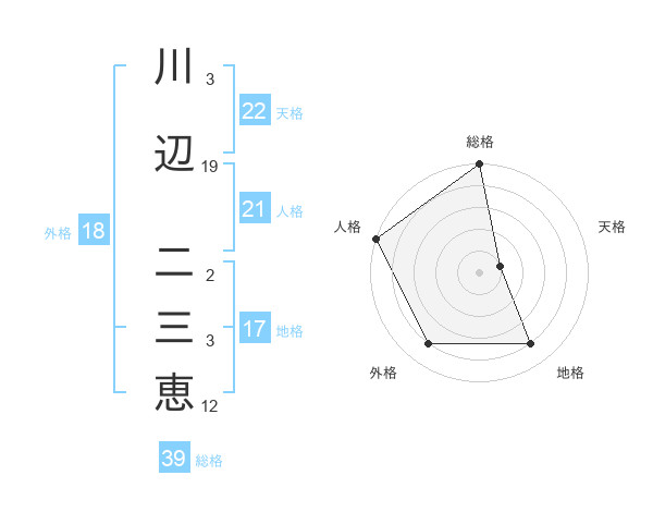 川辺 二三恵さんの総格は39画の5点!