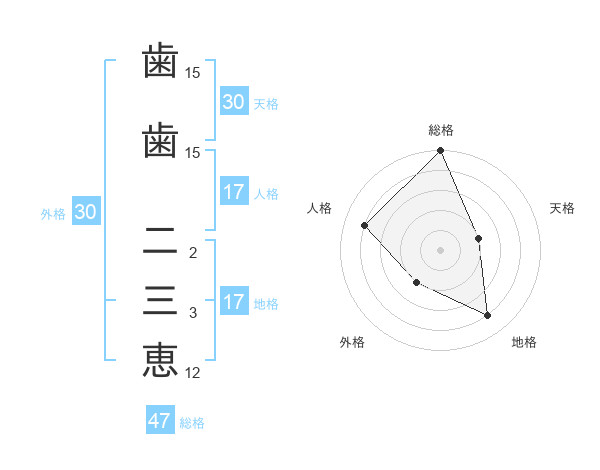 歯歯 二三恵さんの総格は47画の5点!