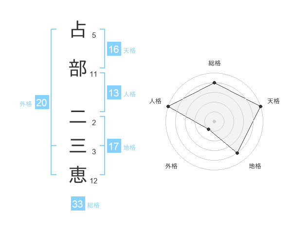 占部 二三恵さんを姓名の画数から五運を鑑定