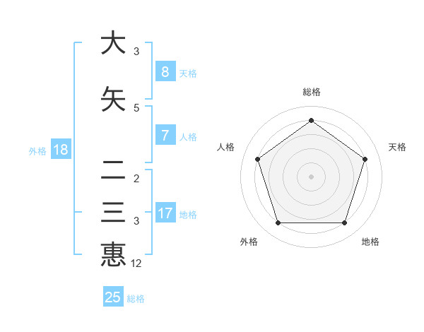 大矢 二三惠さんを姓名の画数から五運を鑑定