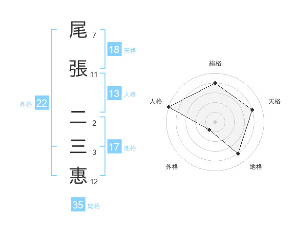 尾張 二三惠さんを姓名の画数から五運を鑑定