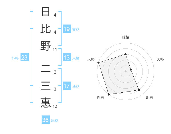 日比野 二三惠さんの外格は23画の5点!