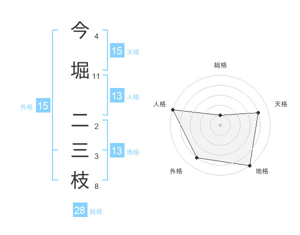今堀 二三枝さんを姓名の画数から五運を鑑定