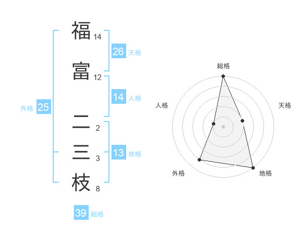 福富 二三枝さんを姓名の画数から五運を鑑定