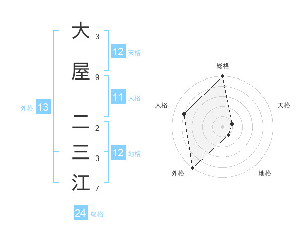 大屋 二三江さんの外格は13画の5点!