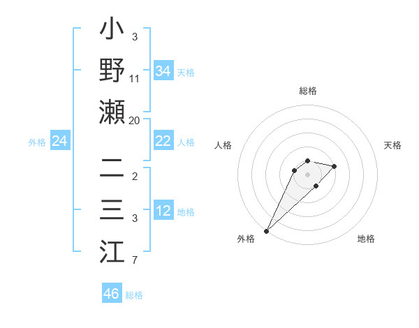 小野瀬 二三江さんを姓名の画数から五運を鑑定