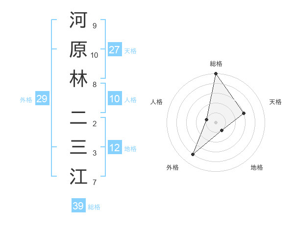河原林 二三江さんを姓名の画数から五運を鑑定
