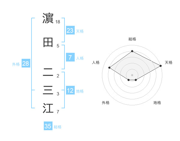 濵田 二三江さんの総格は35画の4点!
