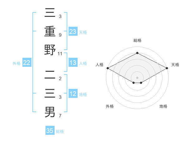 三重野 二三男さんを姓名の画数から五運を鑑定