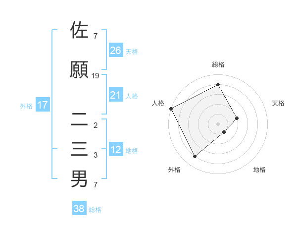 佐願 二三男さんを姓名の画数から五運を鑑定