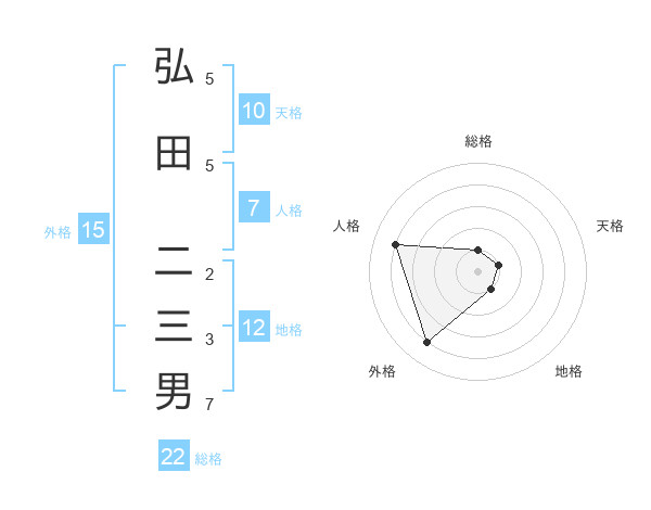 弘田 二三男さんを姓名の画数から五運を鑑定