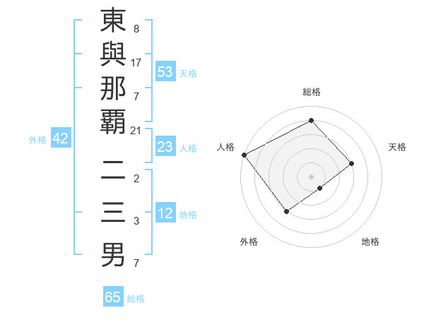 東與那覇 二三男さんを姓名の画数から五運を鑑定