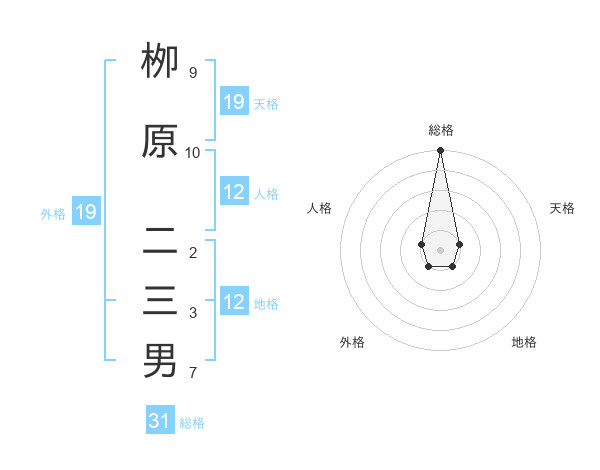 栁原 二三男さんの総格は31画の5点!