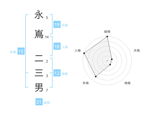 永嶌 二三男さんを姓名の画数から五運を鑑定