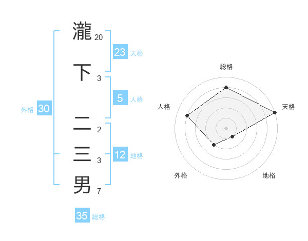 瀧下 二三男さんの総格は35画の4点!